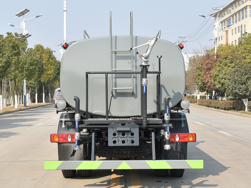 湖北盈通灑水車(chē)產(chǎn)品標(biāo)配前噴(鴨嘴)、后沖、后灑、側(cè)噴、后置式工作 平臺(tái),平臺(tái)上配置綠化水炮(可 360°旋轉(zhuǎn),既可以調(diào)成柱狀,也可 以調(diào)成霧狀,更可以調(diào)成直沖狀、大雨、中雨、小雨、毛毛雨),配 備優(yōu)質(zhì)大功率專(zhuān)用灑水泵(可自吸自排,可從河里或池塘抽水到罐體), 取力器,雜物過(guò)濾網(wǎng),消防接口,自流球閥系統(tǒng)、取力器、球閥、濾網(wǎng) 均為國(guó)家標(biāo)準(zhǔn)產(chǎn)品,主管道加粗,法蘭墊、法蘭盤(pán)加厚,大通徑球閥。 整體具備性能優(yōu)良安全可靠、效率高、流量大、維修方便等特點(diǎn)。