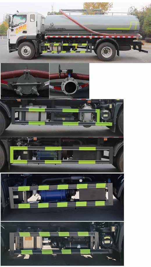 備注 | 主要專用裝置:罐體及吸糞裝置總成,主要用于抽排運污水、糞便、泥漿等液態污物;罐體總容量:12.34立方米;罐體有效容積:11.73立方米;罐體外形尺寸(長×長軸×短軸)(mm):5200×2350×1500,4400×2350×1600;側、后防護材料均為:Q235碳鋼,連接方式均為:螺栓連接,后部防護截面尺寸(mm):120×50,后部防護離地高度(mm):470;ABS系統型號:ABS-VI.E;生產企業:廣州瑞立科密汽車電子股份有限公司.ABS系統型號:ABS-E;生產企業:威伯科汽車控制系統(中國)有限公司,ABS系統型號:3550D-1010;生產企業:東科克諾爾商用車制動系統(十堰)有限公司.采用4500,3950mm軸距.選裝側部及后部出口樣式;隨底盤選裝限速裝置,限速90km/h.選裝尿素罐位置,選裝電瓶位置。 | ||