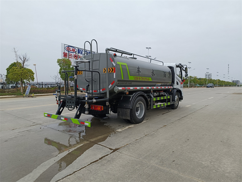 9.2噸灑水車(chē)罐體采用優(yōu)質(zhì)碳鋼制作,灑水車(chē)配備大功率灑水泵,泵可自吸自排,專(zhuān)用功能為:前沖、后灑、帶側(cè)噴,罐體后帶工作平臺(tái),平臺(tái)上安裝綠化灑水高炮,并有多種雨壯可調(diào)節(jié)(大雨.中雨.毛毛雨.霧狀)