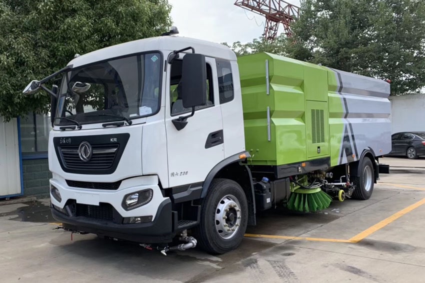 東風天錦洗掃車具有路面清洗、路面清掃路緣和路緣石立面洗刷、低壓沖洗、噴霧 除塵等多功能。有“全洗掃”、 “左洗掃”、 “右洗掃”、 “全掃”、 多種作 業模式可選擇。選擇“全洗掃”模式清洗廣場和路面,清洗效率高效果好,洗 凈率達 95%以上。選擇“左洗掃”或“右洗掃”模式清洗路面和路緣 。需要進 行路面清掃或路面保潔作業時,可選擇掃路模式。需要噴霧除塵時,可開啟噴霧裝置,進行噴霧除塵作業。可以像灑水車一樣對路面進行低壓沖洗作業。