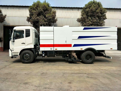 東風天錦吸塵車 上裝配置:2立方水箱、8立方不銹鋼垃圾箱,中置吸盤、康明斯副發動機、施耐德控制開關、海普瑞思電磁閥組、無極變速自動離合器、免維護離心式風機、不銹鋼垃圾箱、高精度垃圾箱過濾系統(最高可達0.3微米)、進口脈沖閥、PLC一鍵智能控制系統、尾部LED箭頭燈、手動泵應急系統、車尾霧狀噴水潤濕功能。可選裝前置雪鏟、掃雪滾。