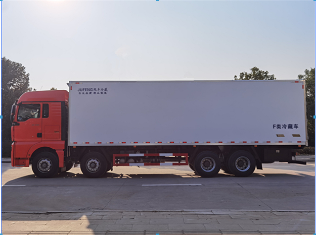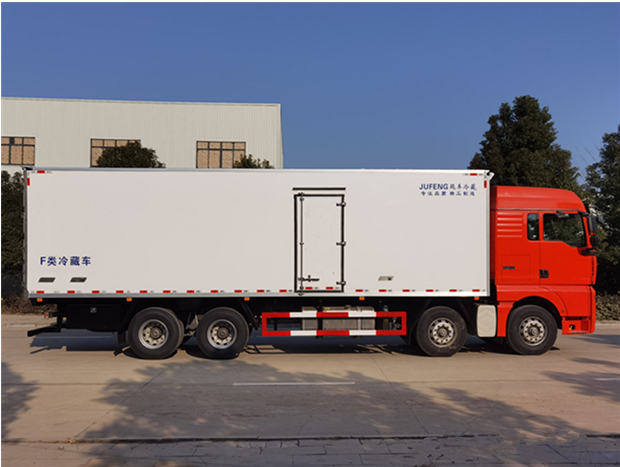 汕德卡9米6氣囊橋冷藏車基本參數:整車外形尺寸:12000×2600×4000mm,車廂凈空尺寸為:9400×2430×2450mm,車廂容積約為56立方,總質量為:32000Kg,整備質量為:13800,14100,14400 Kg,額定質量為:18070,18005,17770,Kg.國六曼機柴油發動機,11L排量,440馬力發動機,重汽12檔變速箱,整車型為:VVV5320XLCZZ6。