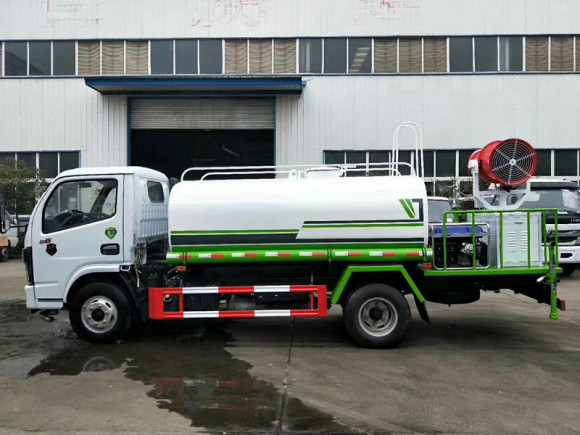 5噸灑水車上裝配置:罐體用4MM碳鋼板制作,罐內隔板具有防波作用,以減低汽車行駛時罐體液體的沖擊。整車帶一個專用灑水泵(垂直*大吸程9米),灑水寬度14米,射程28米。多功能灑水車配備2個前沖(噴)(能將路面泥巴、塵土、垃圾沖干凈);2個后灑(能均勻地將水灑在路面,一次灑水寬度14米)、2個側噴(花灑)(能均勻地將路旁綠化帶澆灌)、帶1個后工作平臺,平臺上安裝1個綠化灑水高炮(灑水炮可旋轉,可連續(xù)調成直沖狀、大雨、小雨、毛毛雨,霧狀可調節(jié)沖洗高大樹木)。帶1個消防接頭,帶1個自流閥,1個過濾裝置、人性化爬梯及側防護欄,安裝灑水音樂喇叭。