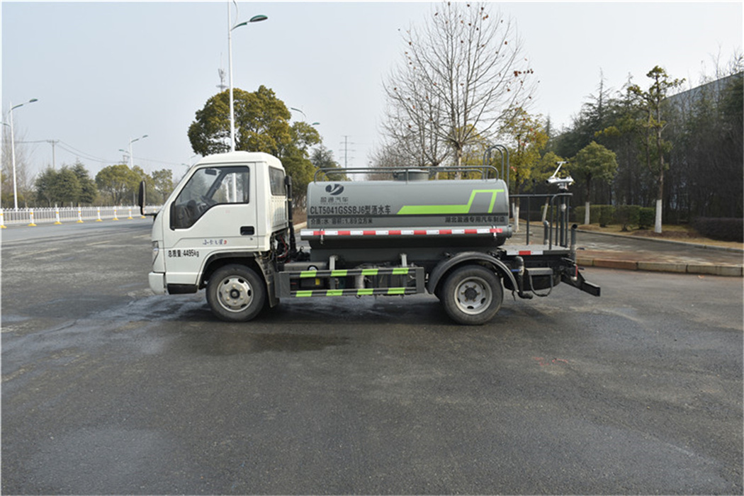 福田2.7 方灑水車藍牌產品主要技術參數 序號 名稱 型號、規格 1 整車型號 CLT5042GSSBJ6 型灑水車 2 發動機型號 Q23-95C60 3 發動機馬力/功率 全柴 95 馬力/70KW 4 發動機排量 2300ML 5 變速箱 蒙沃 5 檔箱 6 輪胎規格 6.00 鋼絲胎 7 軸距 2600 8 總質量 4495KG 9 整備質量 2285KG 10 額定載質量 2080KG 11 整車尺寸(長×寬×高) 5.33*1.9*2.2 12 罐體容積 2.7 方 13 燃料種類 柴油 14 排放標準 國六 15 水泵型號 40/50 16 罐體材質 Q235 碳鋼