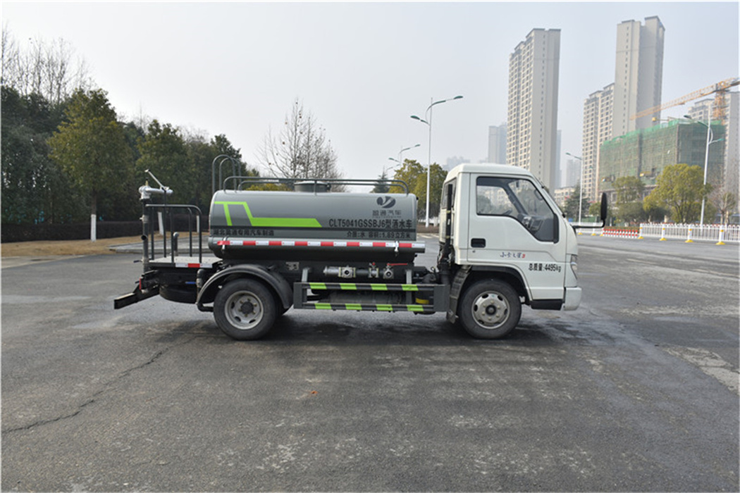 定州灑水車產品主要技術參數 序號 名稱 型號、規格 1 整車型號 CLT5042GSSBJ6 型灑水車 2 發動機型號 Q23-95C60 3 發動機馬力/功率 全柴 95 馬力/70KW 4 發動機排量 2300ML 5 變速箱 蒙沃 5 檔箱 6 輪胎規格 6.00 鋼絲胎 7 軸距 2600 8 總質量 4495KG 9 整備質量 2285KG 10 額定載質量 2080KG 11 整車尺寸(長×寬×高) 5.33*1.9*2.2 12 罐體容積 2.7 方 13 燃料種類 柴油 14 排放標準 國六 15 水泵型號 40/50 16 罐體材質 Q235 碳鋼