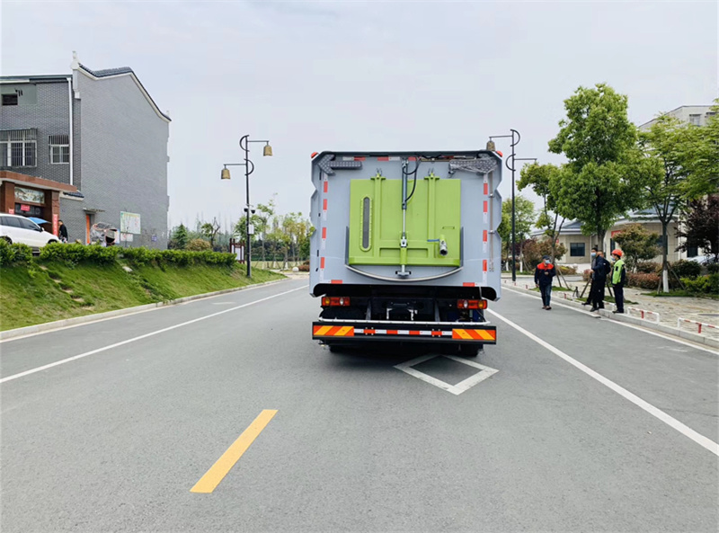 6)具備倒車保護裝置,在作業(yè)過程中如遇緊急倒車,智能化的控制系統(tǒng)會自動停止作業(yè)并收回掃盤、吸盤和側(cè)噴桿;具有防止舉升垃圾箱翻車保護;具有檢修安全保護。