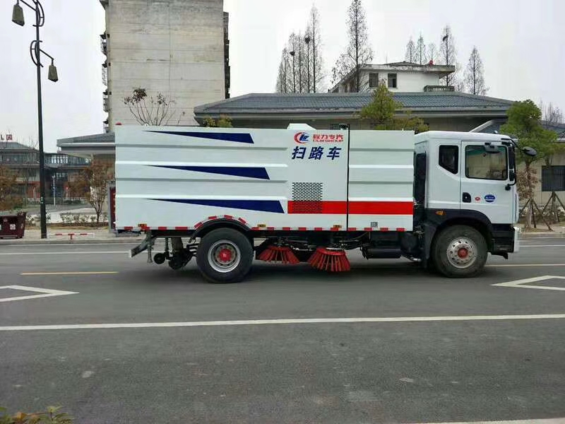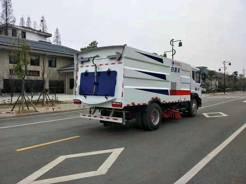 1. 采用吸掃結(jié)合的方式收集垃圾,濕式除塵、電液控制,液壓傾翻卸料的作業(yè)方式對(duì)路面進(jìn)行清掃作業(yè)。