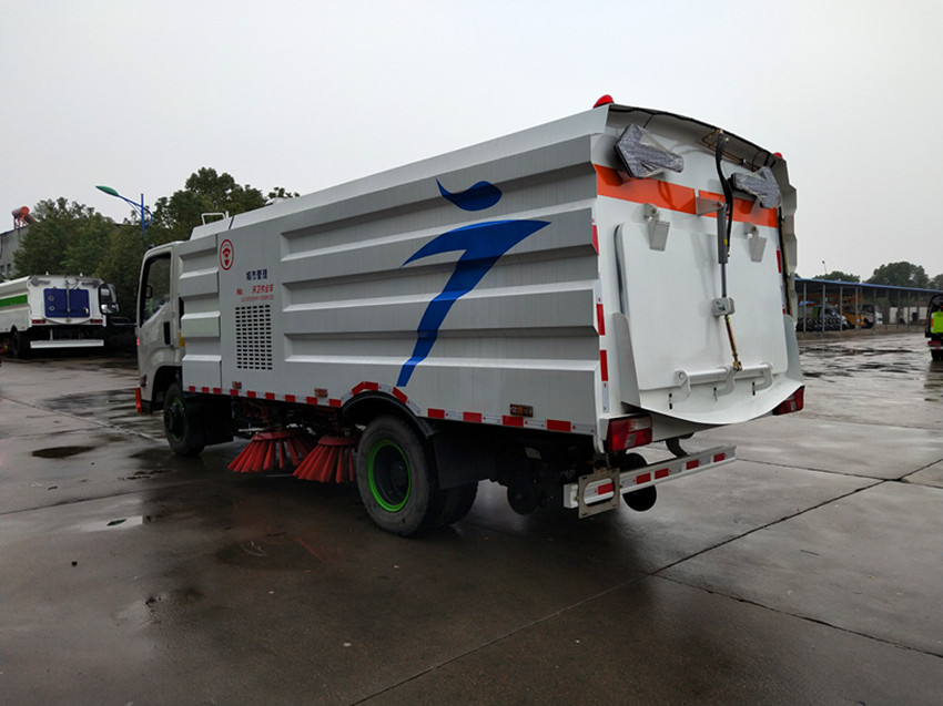 1、掃路車采用吸掃結合的方式收集垃圾,濕式除塵、電液控制,液壓傾翻卸料的作業方式對路面進行清掃作業。