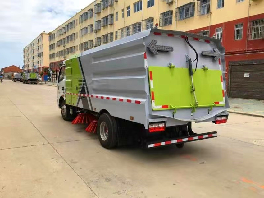 1、東風(fēng)多利卡掃路車采用吸掃混合的方式收集垃圾,濕式除塵,電液傾翻卸料的作業(yè)方式對路面進行清掃作業(yè)。