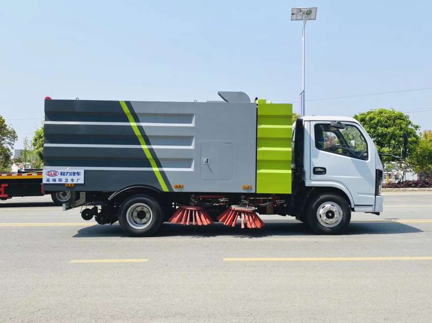 國六洗掃車主要由:汽車二類底盤、副發動機及其傳動裝置、風機、高壓水清洗系統、低壓沖洗系統、掃盤降塵系統、清水箱、垃圾箱、左右清掃裝置、吸嘴、液壓系統、氣動系統、電控系統等部件組成。