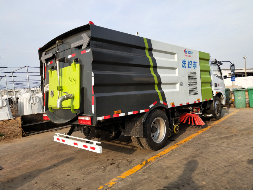 2、掃路車采用吸掃結合的方式收集垃圾,濕式除塵、電液控制,液壓傾翻卸料的作業方式對路面進行清掃作業。