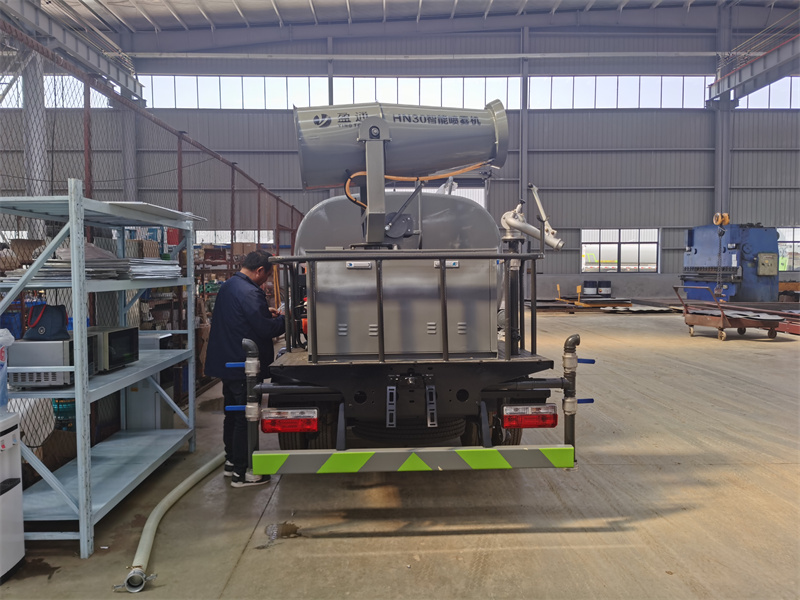 5方多利卡灑水車上裝配置: 1、罐體約為 5 方, 2、邊燈帶電,罐體尾部上方標配 2 個紅色示寬燈, 3、標配前噴為鴨嘴直沖,標配后沖,用戶可根據自己的需求,來調 整對沖位置。 4、沖孔平臺(承載能力加強),炮筒后蓋為定制型螺栓卡扣, 5、前噴、后沖、后灑、側噴,綠化高炮開關球閥均采用 50 大通經 不銹鋼球閥, 6、新式軸承式水炮,更加耐用, 7、40-50 型水泵, 8、防腐法蘭墊片, 9、鋁制后灑,不易炸開 10、罐體自動焊(美國林肯焊機及電源),拼板自動焊接,封頭環 縫焊接,無氣孔,焊縫美觀。 11、側護網、后保險杠、均為螺栓連接,方便拆卸,維修方便。 12、塑料擋泥板,替代鐵擋泥板,更加輕便,用螺栓連接,方便拆 卸。 13、前部、后部主管連接處為 6 孔圓法蘭,不易沖墊