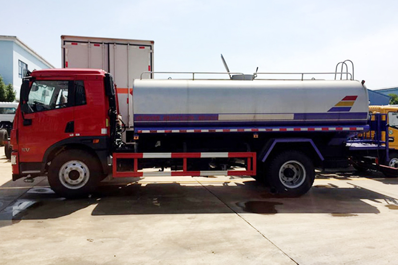 解放12噸灑水車采用一汽解放龍V底盤,白色排半可前翻駕駛室,大柴180馬力國六發動機,6擋變速箱,軸距4500mm,9噸后橋,9.00R20原廠鋼絲胎,原廠abs,帶方向助力,離合助力器,氣剎制動,原廠空調。