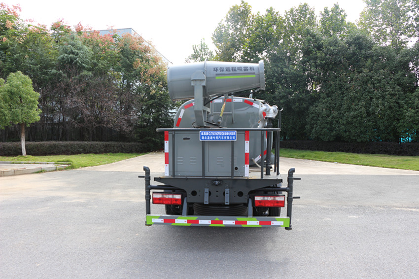 罐體為8立方圓形罐,罐體內部做防腐,帶加熱功能,前沖、后灑、側噴、高炮,抑塵噴灑桿(帶旋轉伸縮功能)。噴灑桿離地3.5-5米,后部平臺帶8KW副發電機組,罐體內部加兩個1.5KW電動馬達(帶攪拌功能)罐體噴漆上白下藍,平臺和噴灑桿藍色。遙控操作噴灑桿上下左右旋轉,國內知名品牌回轉支撐,大品牌油缸。。罐體外部做5CM+保溫層,加裝燃燒機,罐體帶加熱功能。可滿足零下0-30°工作環境。噴灑桿離地可伸縮:3.5-5米 。噴灑桿滿足360°旋轉,全自動遙控操作噴灑裝置。