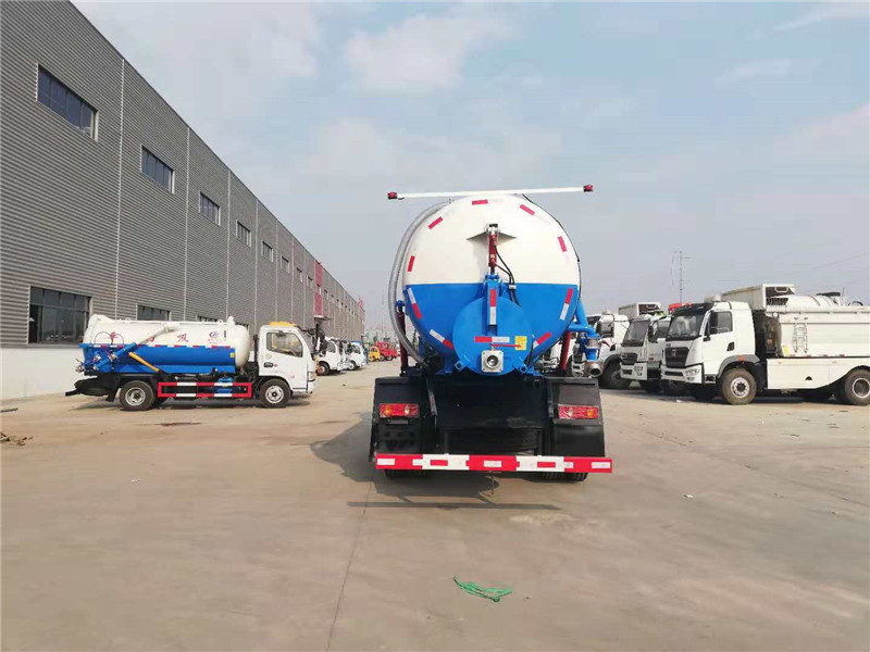 吸污車專用部分由取力器、傳動軸、真空吸污泵、壓力罐體、液壓部分,管網系統、真空壓力表、視糞窗、洗手裝置等組成,隨車配置大功率真空吸污泵和優質液壓系統,罐體封頭一次壓鑄成型、罐體可后開、雙頂自卸。罐內污物可通過后蓋直接傾倒,具有真空度高(比吸糞車的吸力更大)、噸位大、效率高、用途更廣泛的特點。