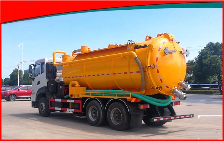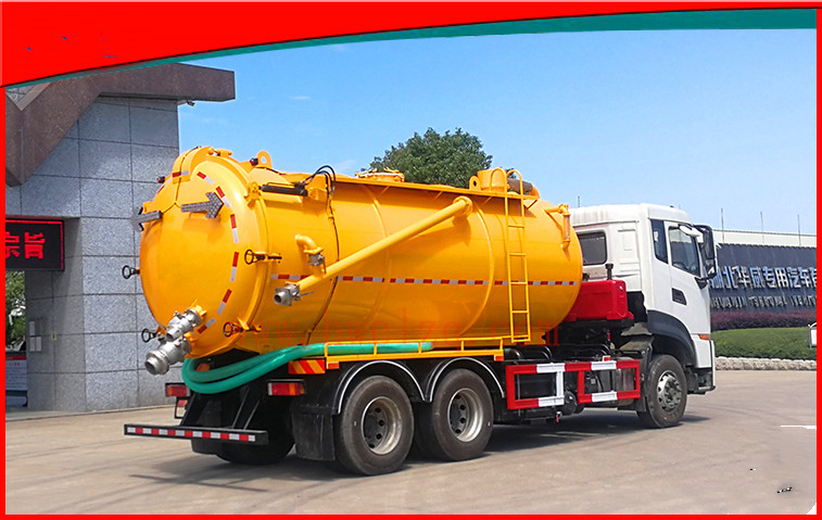 上裝為一體式罐體結構,分污水罐和清水罐兩部分,采用優質碳鋼制作而成,罐體厚度為8毫米,罐體內部均安裝有爬梯,底部焊有1.6米左右的不銹鋼底板,罐體外部也安裝有爬梯。清水罐頂部安裝有排氣閥,底部安裝有排水閥。清洗部分選用350大流量高壓泵,雙向進水,帶氣吹水功能,高壓泵安裝有過濾網,標配100米高壓管,后封頭8毫米厚,尾部液壓絞盤可旋轉180度,加裝有節流閥,用于控制快慢。整車上裝搭配有420馬力副發動機,標配大型水循環泵,搭配不銹鋼水循環泵水箱,吸污管標配長度為10米。后封頭標配有6寸球閥1個,4寸球閥3個,直徑600mm的液壓開啟蓋,方便排放污水,罐體帶液壓舉升功能,排污快捷方便。