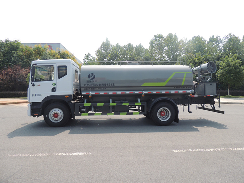 東風(fēng) D9- 12方抑塵車產(chǎn)品配置 1.底盤配置: 發(fā)動(dòng)機(jī)康明斯 195 馬力(四缸),法士特 8 檔變速箱,2315 駕駛 室,3.9T 前橋,8T 后橋,275/80R22.5 真空胎,軸距 3950,250 大梁, 斷氣剎,空調(diào),電動(dòng)玻璃,中控鎖。2.上裝配置: 1、罐體約為 12 方,可加裝 30-40 型霧炮 2、邊燈帶電,罐體尾部上方標(biāo)配 2 個(gè)紅色示寬燈, 3、標(biāo)配前噴為鴨嘴直沖,標(biāo)配后沖,用戶可根據(jù)自己的需求,來(lái)調(diào) 整對(duì)沖位置。 4、花紋防滑平臺(tái),炮筒后蓋為定制型螺栓卡扣, 5、前噴、后沖、后灑、側(cè)噴,綠化高炮開關(guān)球閥均采用 50 大通經(jīng) 不銹鋼球閥, 6、新式軸承式水炮,更加耐用, 7、60-90 型水泵, 8、防腐法蘭墊片, 9、鋁制后灑,不易炸開 10、罐體自動(dòng)焊(美國(guó)林肯焊機(jī)及電源),拼板自動(dòng)焊接,封頭環(huán) 縫焊接,無(wú)氣孔,焊縫美觀。 11、側(cè)護(hù)網(wǎng)、后保險(xiǎn)杠、均為螺栓連接,方便拆卸,維修方便。 12、塑料擋泥板,替代鐵擋泥板,更加輕便,用螺栓連接,方便拆 卸。 13、前部、后部主管連接處為 6 孔圓法蘭,不易沖墊
