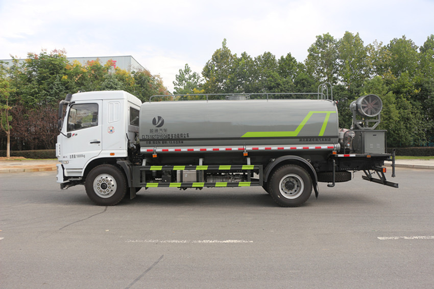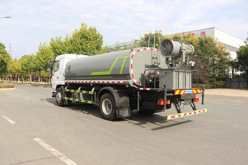 東風華神16方抑塵車-霧炮車產品配置 1.底盤配置: 發動機玉柴 200 馬力(六缸),法士特 8 檔變速箱,前橋 3.6 噸, 后橋 9 噸,10.00 鋼絲胎,軸距 4500,斷氣剎,ABS,空調,氣囊座椅, 電動玻璃,中控鎖。2.上裝配置: 1、罐體約為 16 方,可加裝 30-40 型霧炮 2、邊燈帶電,罐體尾部上方標配 2 個紅色示寬燈, 3、標配前噴為鴨嘴直沖,標配后沖,用戶可根據自己的需求,來調 整對沖位置。 4、花紋防滑平臺,炮筒后蓋為定制型螺栓卡扣, 5、前噴、后沖、后灑、側噴,綠化高炮開關球閥均采用 50 大通經 不銹鋼球閥, 6、新式軸承式水炮,更加耐用, 7、60-90 型水泵, 8、防腐法蘭墊片, 9、鋁制后灑,不易炸開 10、罐體自動焊(美國林肯焊機及電源),拼板自動焊接,封頭環 縫焊接,無氣孔,焊縫美觀。 11、側護網、后保險杠、均為螺栓連接,方便拆卸,維修方便。 12、塑料擋泥板,替代鐵擋泥板,更加輕便,用螺栓連接,方便拆 卸。 13、前部、后部主管連接處為 6 孔圓法蘭,不易沖墊