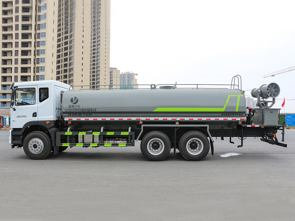 東風(fēng)華神T5 -20方抑塵車-大型霧炮車產(chǎn)品配置 1.底盤配置: 發(fā)動(dòng)機(jī)康明斯 260 馬力(六缸),法士特 8 檔變速箱,前橋 5 噸,雙 10 噸后橋,11.00 鋼絲胎,軸距 4350+1350,斷氣剎,ABS,空 調(diào),氣囊座椅,電動(dòng)玻璃,中控鎖。多功能方向盤。2.上裝配置: 1、罐體約為 20 方,可加裝 30-40 型霧炮 2、邊燈帶電,罐體尾部上方標(biāo)配 2 個(gè)紅色示寬燈, 3、標(biāo)配前噴為鴨嘴直沖,標(biāo)配后沖,用戶可根據(jù)自己的需求,來(lái)調(diào) 整對(duì)沖位置。 4、花紋防滑平臺(tái),炮筒后蓋為定制型螺栓卡扣, 5、前噴、后沖、后灑、側(cè)噴,綠化高炮開(kāi)關(guān)球閥均采用 50 大通經(jīng) 不銹鋼球閥, 6、新式軸承式水炮,更加耐用, 7、60-90 型水泵, 8、防腐法蘭墊片, 9、鋁制后灑,不易炸開(kāi) 10、罐體自動(dòng)焊(美國(guó)林肯焊機(jī)及電源),拼板自動(dòng)焊接,封頭環(huán) 縫焊接,無(wú)氣孔,焊縫美觀。 11、側(cè)護(hù)網(wǎng)、后保險(xiǎn)杠、均為螺栓連接,方便拆卸,維修方便。 12、塑料擋泥板,替代鐵擋泥板,更加輕便,用螺栓連接,方便拆 卸。 13、前部、后部主管連接處為 6 孔圓法蘭,不易沖墊