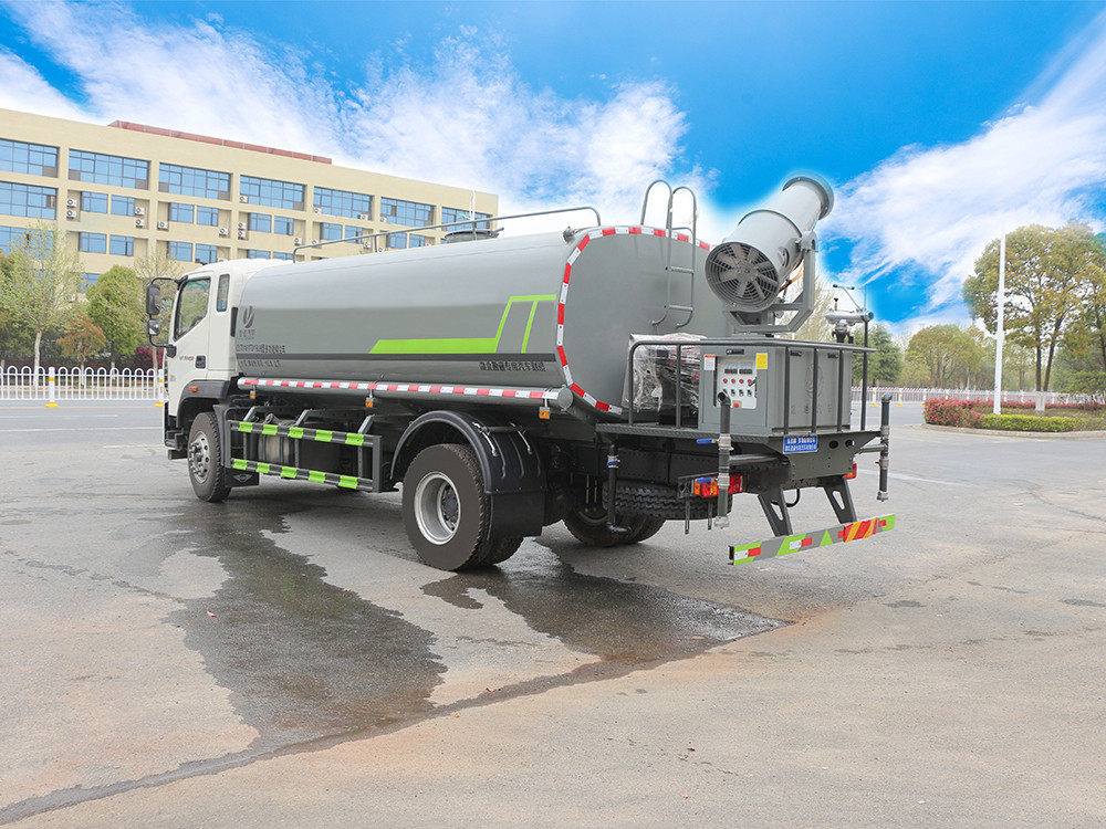 二.產品配置 1.底盤配置: 發動機玉柴 245 馬力(六缸),法士特 8 檔,3950 軸距,10.00 鋼絲胎,前 4.5T/后 10T,中控鎖,電動玻璃,助力,空調,行車記錄 儀2.上裝配置: 1、罐體約為 12 方,可加裝 30-40 型霧炮 2、邊燈帶電,罐體尾部上方標配 2 個紅色示寬燈, 3、標配前噴為鴨嘴直沖,標配后沖,用戶可根據自己的需求,來調 整對沖位置。 4、花紋防滑平臺,炮筒后蓋為定制型螺栓卡扣, 5、前噴、后沖、后灑、側噴,綠化高炮開關球閥均采用 50 大通經 不銹鋼球閥, 6、新式軸承式水炮,更加耐用, 7、60-90 型水泵, 8、防腐法蘭墊片, 9、鋁制后灑,不易炸開 10、罐體自動焊(美國林肯焊機及電源),拼板自動焊接,封頭環 縫焊接,無氣孔,焊縫美觀。 11、側護網、后保險杠、均為螺栓連接,方便拆卸,維修方便。 12、塑料擋泥板,替代鐵擋泥板,更加輕便,用螺栓連接,方便拆 卸。 13、前部、后部主管連接處為 6 孔圓法蘭,不易沖墊