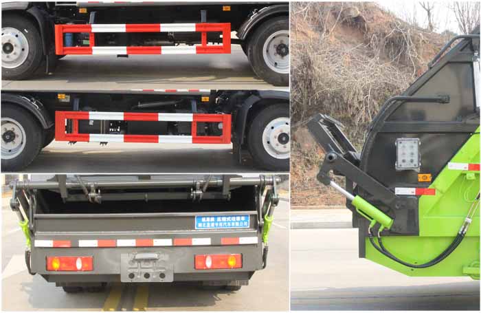 東風華神8方壓縮垃圾車該車專用裝置為垃圾箱體及液壓系統裝置,主要用于垃圾的收集,轉運作業.選裝無上料裝置時無后伸,選裝密封斗裝置,擺臂裝時,后伸280mm,選裝翻轉機構,翻掛桶,三角斗時,后伸380mm.側防護材料均為:Q235碳鋼,連接方式均為:螺栓連接,后部防護由專用裝置代替,后部防護離地高度(mm):500.ABS型號及生產廠家為:3631010-C2000/東科克諾爾商用車制動系統(十堰)有限公司,J ABS/焦作博瑞克控制技術有限公司.發動機型號/油耗值(L/100km)對應關系:YCY30165-60/19.7,D25TCIF1/20.1.該車型可選裝直接供電式ETC車載裝置.僅采用3800mm軸距底盤改裝.選裝樣車側面樣式.隨底盤選裝駕駛室.