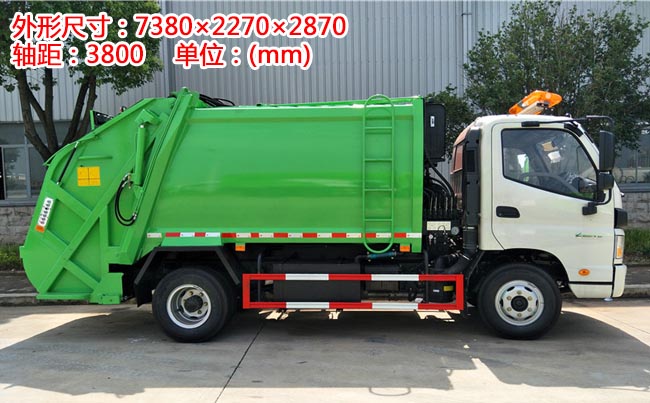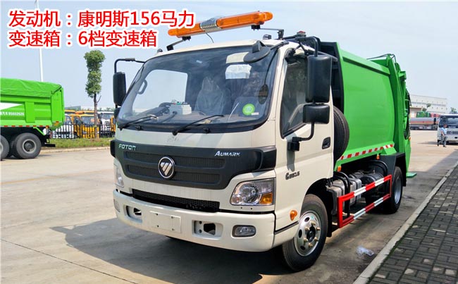 福田歐馬可壓縮式垃圾車,2.05米寬駕駛室、單排前翻、康明斯154馬力,6檔變速箱、軸距3.8米,6噸后橋、7.50R16鋼絲胎、動(dòng)力轉(zhuǎn)向、空調(diào)、定速巡航、離合助力、斷氣剎、ABS。