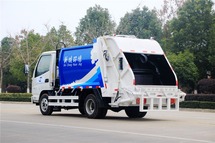 凱馬3-4方壓縮式垃圾采用自動控制系統,實現垃圾倒入、壓碎或壓扁,并壓實和推卸,污水全部進入污水廂,解決了垃圾運輸過程中的二次污染的問題。壓縮式垃圾車后掛桶翻轉機構或垃圾斗翻轉機構,作業自動化,垃圾收集方式簡便、高效。